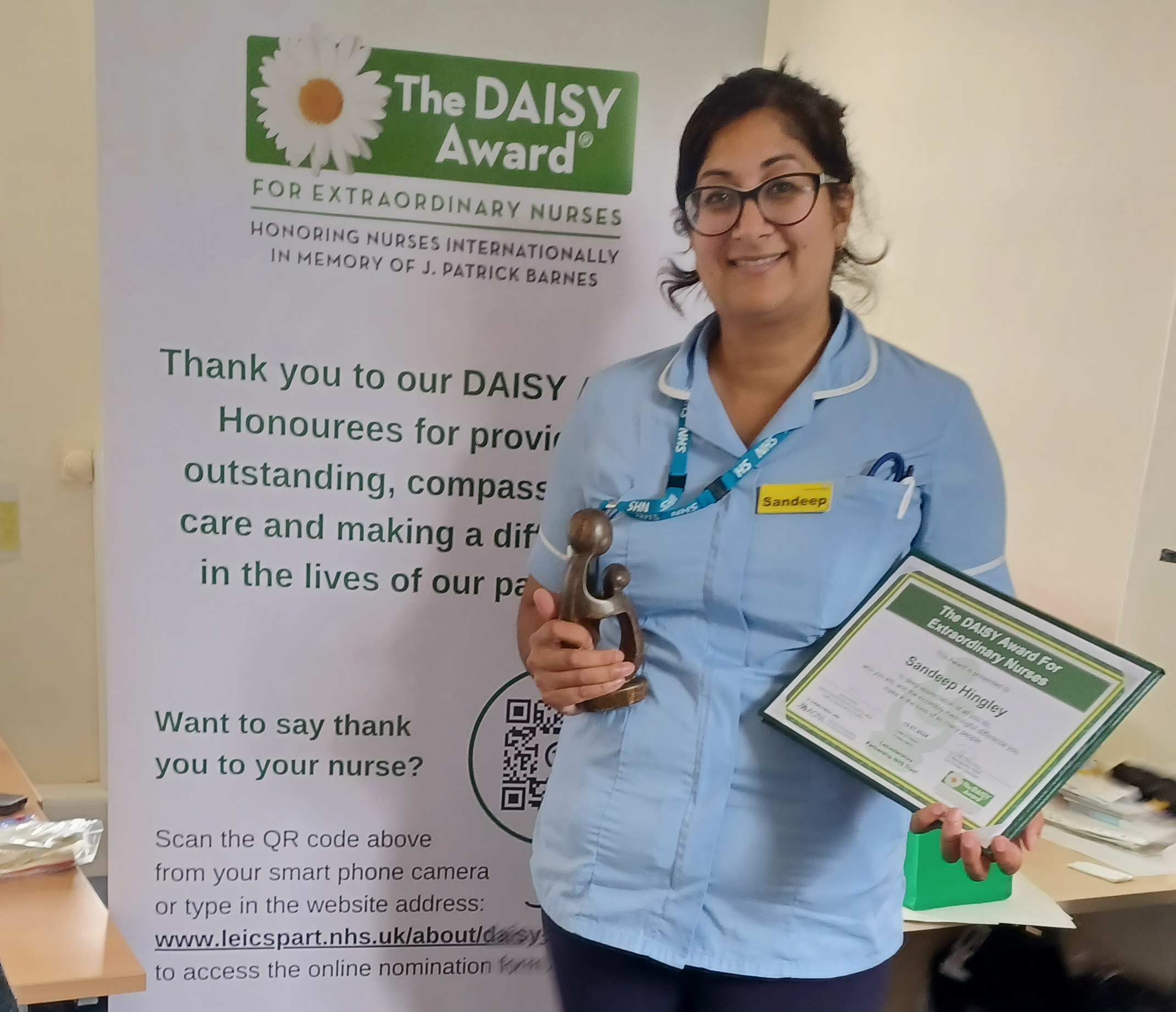 Sandeep Hingley, community nurse in Community Health Services Click here to read Sandeep’s nomination and Download Sandeep’s DAISY Award spotlight here.