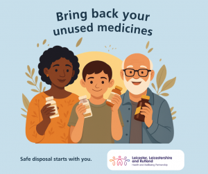 We are urging all our patients (and their family, friends and carers) to return all unused medicines to a community pharmacy. All community pharmacies in Leicester, Leicestershire and Rutland are prepared to accept medicines for safe disposal in March 2026.