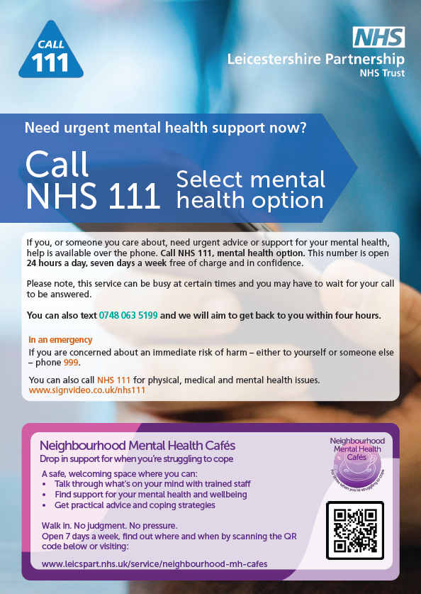 NHS 111/Neighbourhood Mental Health Café poster