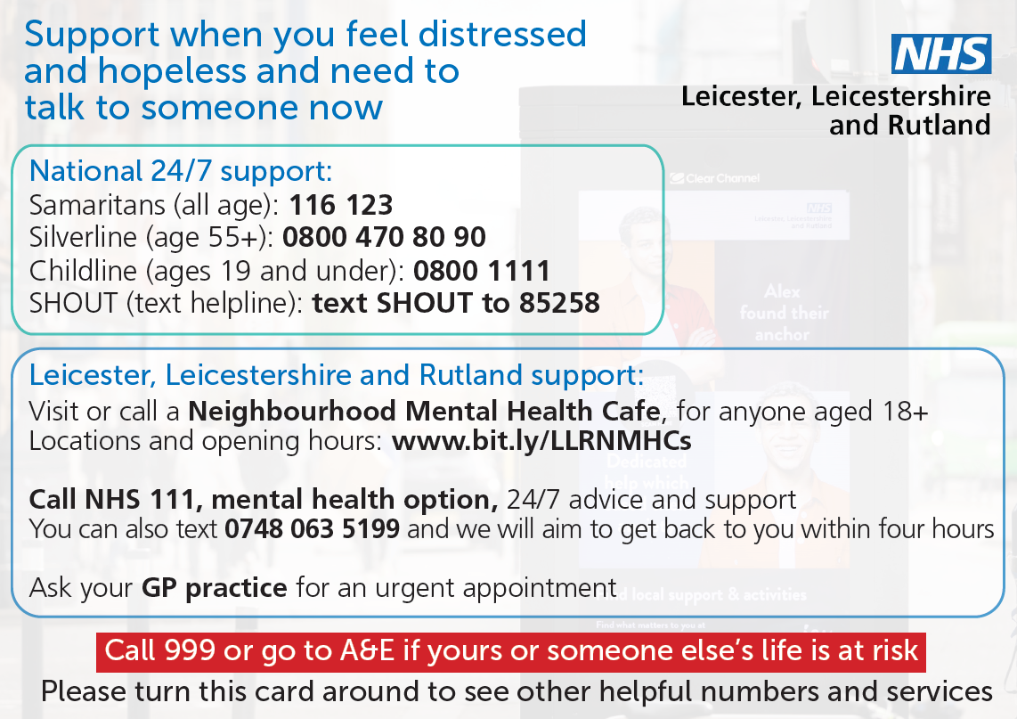 Information about services across Leicester, Leicestershire and Rutland that provide support for your mental health and wellbeing.